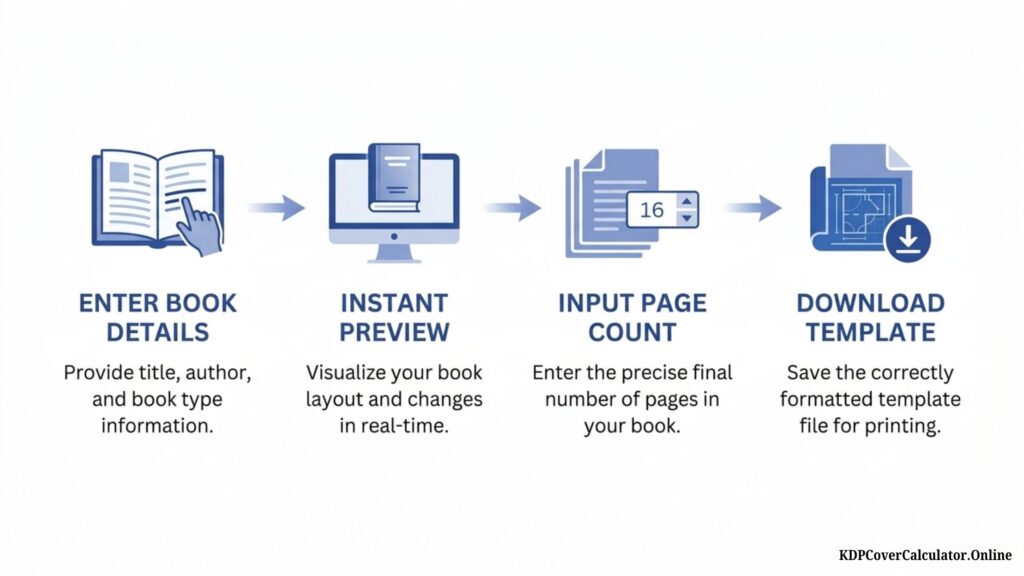 There’s no need to waste time on manual spine calculations or guesswork with cover dimensions. Enter your book details, select your trim size, and generate a precise Amazon KDP cover template in seconds.